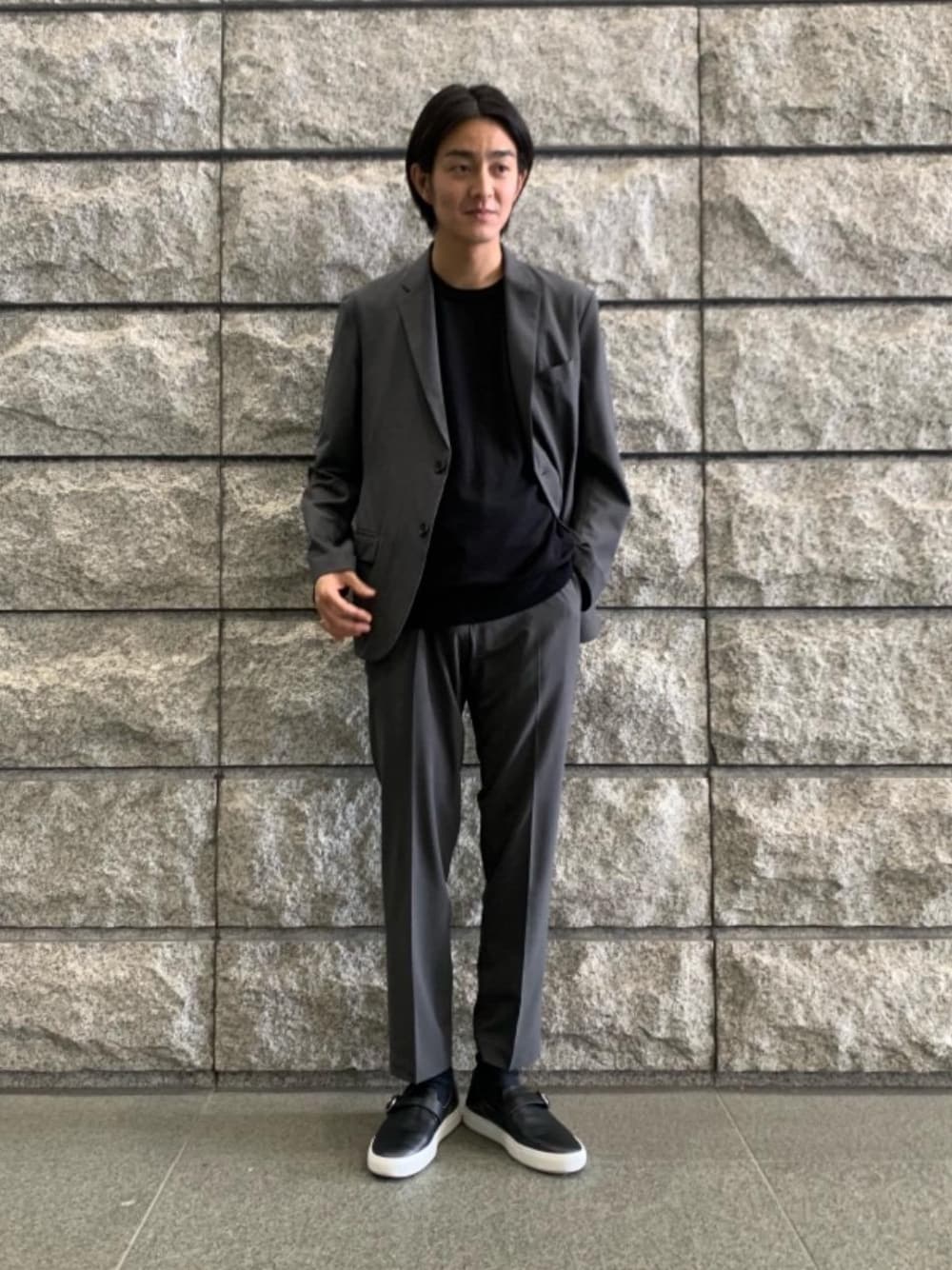 身長:178cm 普段のサイズ:トップスLサイズ、ボトムスMサイズ <サイズ感> トップス:標準 インナー:ややゆったり ボトムス:標準サイズ シューズ:標準サイズ <素材感> セットアップはポリエステルを使用 インナーにはコットンを使用 <着心地> セットアップは軽量化とストレッチ性がある為、長時間の移動やお仕事にも着用いただけます。 <コーディネートポイント> 機能性を重視したコーディネートです。 セットアップはご自宅での洗濯が可能となりシワになりづらいのでこれからの季節におすすめです。 シューズはスリッポンタイプとなり足への負担が軽減されます。