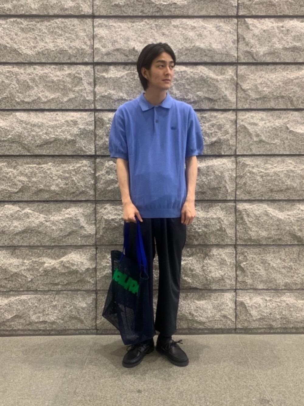 身長:178cm 普段のサイズ:トップスLサイズ、ボトムスMサイズ <サイズ感> トップス:ややゆったり ボトムス:ややゆったり シューズ:標準サイズ <素材感> トップスは綿とポリエステルを使用 ボトムスはポリエステル、レーヨン、ポリウレタンを使用 <着心地> トップスは速乾性のある生地でサラッとした着心地となり、ボトムスはウエスト部分がゴムとなっており、快適な履き心地となります。 <コーディネートポイント> LACOSTEの別注ポロシャツは清涼感のある色味となりカジュアルなパンツはもちろん、きれいめなスラックスと合わしていただくのもおすすめです。