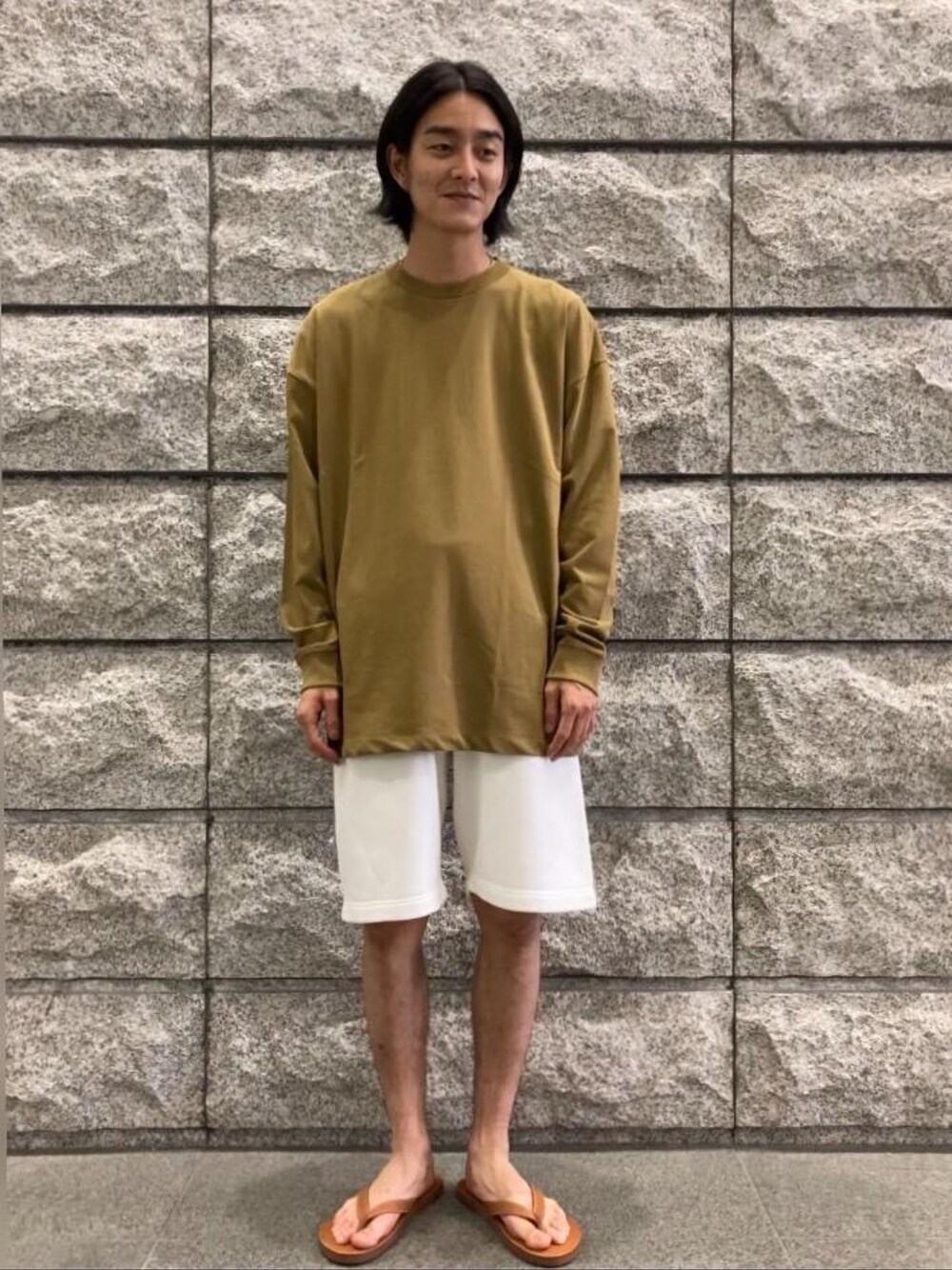 身長:178cm 普段のサイズ:トップスLサイズ、ボトムスMサイズ <サイズ感> トップス:ゆったり ボトムス:ゆったり <コーディネートポイント> リラックスしたコーディネートですが、トップス、ボトムス共に生地感がよく品のあるコーディネートに仕上がります。 ATONのロングスリーブTシャツはゆったりとしたシルエットでショーツとあわせていただくのがおすすめです。