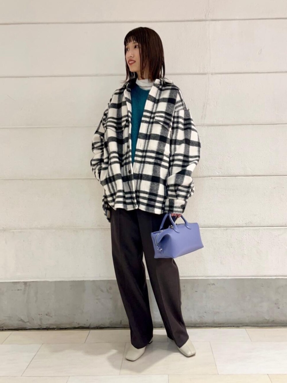 ●年齢:20代 ●身長:162cm ●普段サイズ:トップスM/スカートM/シューズ24cm 【サイズ感】 アウター:ゆったりめ ニット:ややゆったりめ パンツ:丈長め シューズ:細め 【素材感】 アウター:厚手のポリエステル100% ニット:モヘア70%、ウール15%、ナイロン15% パンツ:ポリエステル100% シューズ:合皮 【着心地】 アウター:軽やか パンツ:ウエストオールゴムでストレスなくお召し頂けます 【コーディネートポイント】 メンズのアウターを使ってメンズライクなスタイリングにまとめました。ヒールのブーツと女性らしいフェミニンなバッグで外したのもポイントです。