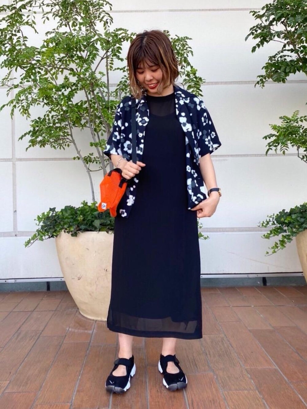 ワンピースにスポーティなアイテムを合わせてカジュアルにまとめました。