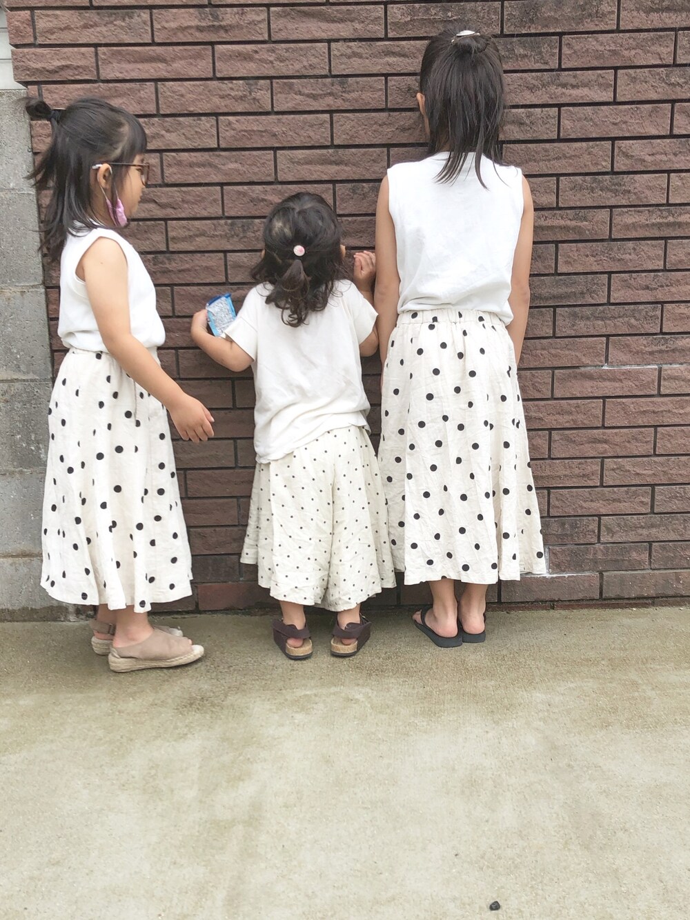 だーーれも前向いてくれない😂 ドットコーデ🖤🤍🖤 天気悪くて公園行けない日は スカートです🤣✌️ まじでまじで、デニム全くはいてくれない😭タンスのこやし、多すぎるー😭😭