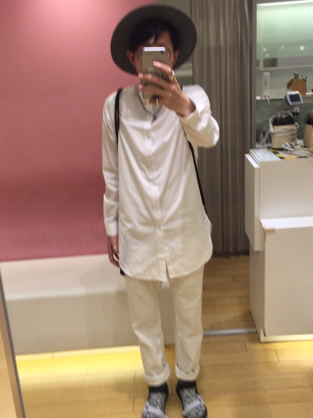 ロング丈シャツ ホワイトワントーンコディネート