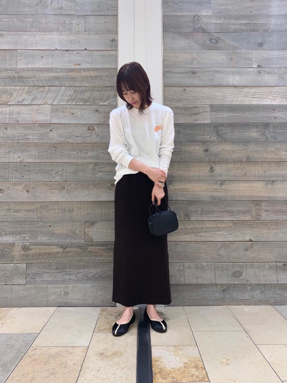 スナックTシャツが遊び心あるので 黒のアイテムで合わせてシックな印象をプラスしました。