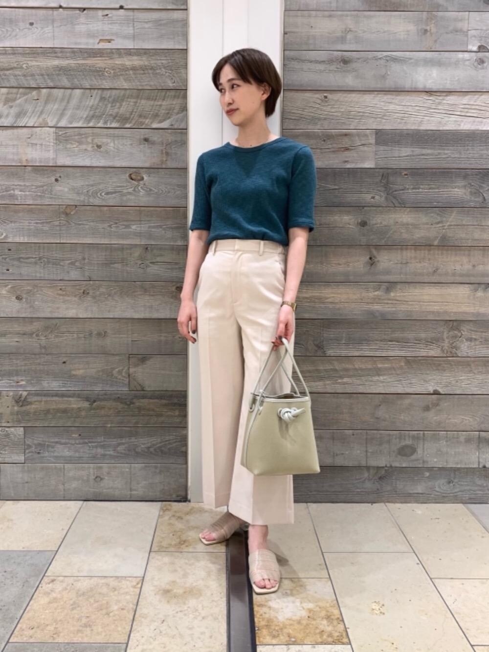 スラブリブ素材のカットソーは 伸縮性もあり着心地抜群です! コンパクトなサイズ感で少し深い背中のネックも 女性らしくお召しいただけるポイントです。 今回はクロップド丈のフレアパンツと合わせて 女性らしい抜け感を感じるコーディネートにしました。