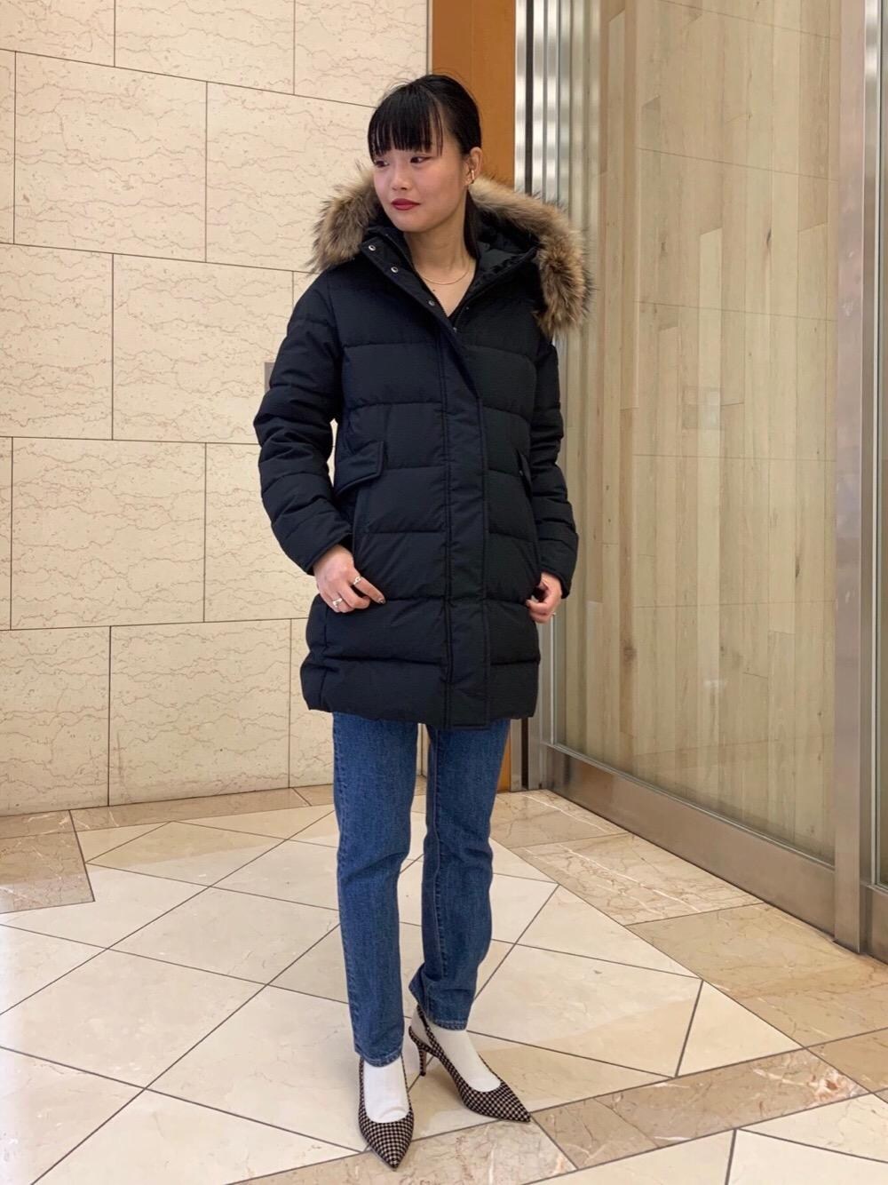 ジップを開けても閉めてもシルエットが綺麗なダウンなので、細身のパンツにパンプスを合わせ、すっきりと女性らしいスタイリングにしました。 バスト下に程よいシェイプが入っており、タイトに見せてくれますが、肩周りは可動域があり、楽な着心地で着られます。 大人綺麗めカジュアルスタイリングにオススメの1枚です。