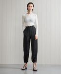 ●身長:157㎝ ●普段サイズ:36から38 【サイズ感】 トップス→伸縮性あり。リブのフィット感よりゆったりしてます。お袖は長め。 パンツ→身幅はありますが、ウエストが細く、足首も絞れるので、バランスが良いです。 シューズ→普段のサイズ感で問題なし。 【素材感】【着心地】 トップス→とても軽い着心地。透け感があるので、夏場でも爽やかに着ていただけます。 パンツ→軽くサラッとした着心地。ラインも出過ぎないので、楽に着れます。