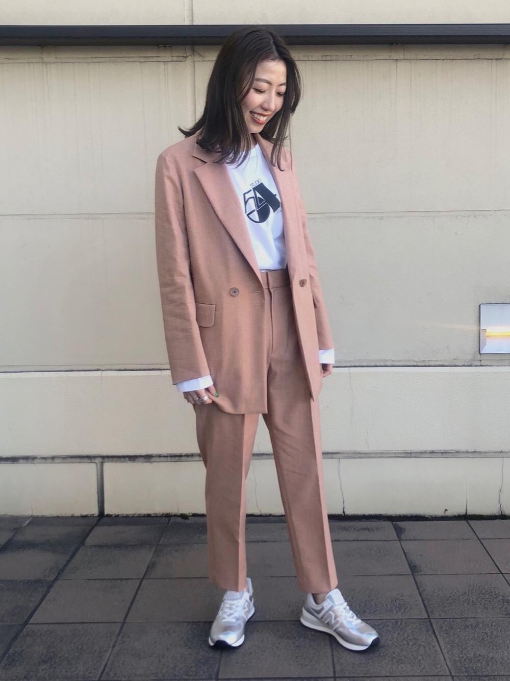 麻ブレンドのセットアップをプリントTシャツ、スニーカーを合わせカジュアルにまとめました。セットアップですが、着丈も長くゆとりもあるので、かっちりしたものが苦手な方でも挑戦しやすいアイテムとなっております。