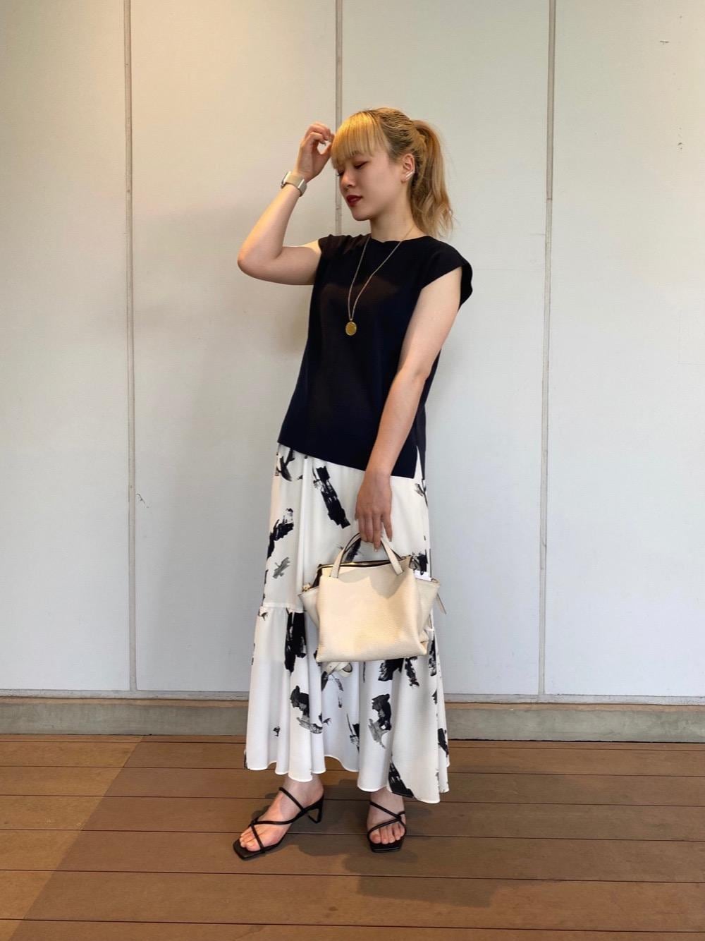 【年齢】 20代前半 【身長】 158cm 【普段サイズ】 トップス36/ボトムス36/シューズ24cm 【サイズ感】 トップス:標準 ボトムス:標準 【素材感・着心地】 トップス:コットン素材で、とても柔らかく、肌触りが良いです。 ボトムス:ウエストゴム仕様で、裾にかけて程よく広がるシルエットです。 【コーディネートポイント】 全体をモノトーンで合わせ、スカートが主役になるようにしました。トップスやシューズに色物を合わせていただくのもおすすめです。