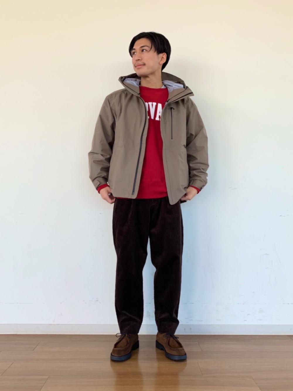 透湿・防水・防風機能を持つハイスペックなフーディアノラックをメインに、暖かみを感じる暖色でまとめて季節感を出しました。 アノラックには防風機能が備わっているのでニットやインナーダウンを着込んでいただければより寒い時期にも活躍します。 街での着用はもちろん、GoToトラベルで自然豊かな場所へご旅行の際などにも大変オススメです。