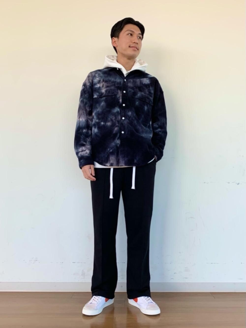 インパクトのあるタイダイ柄のシャツをメインにコーディネートし、国内エクスクルーシブカラーのNIKEのブレーザーを差し色に使用しました。 今回のように控えめな着こなしや、柄×柄の攻めた着こなしも映えるタイダイ柄のシャツのようなアイテムは1着あると着こなしの幅がとても広がるのでオススメです。