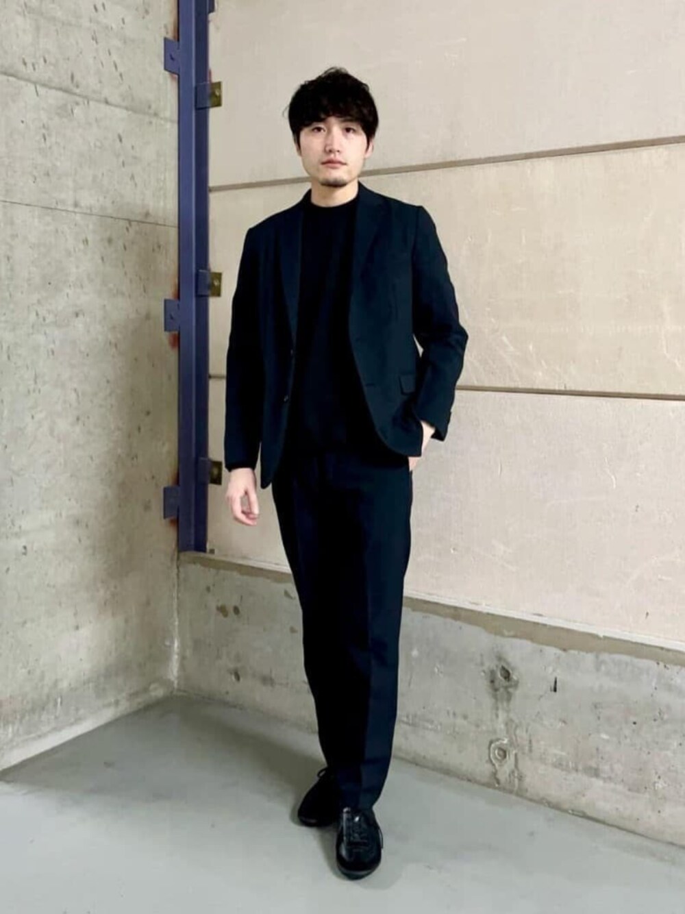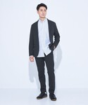 『WEB限定アイテムJUST fitシリーズ』 【サイズ感】 すべてMサイズ着用 ジャケット : すっきりとしたシルエット パンツ : すっきりとしたシルエット インナー : すっきりとしたシルエット 【ポイント】 ダークトーンでまとめたセットアップスタイリングです。すっきりした印象に見え、ON/OFFでもスマートに着こなしができおすすめです◎