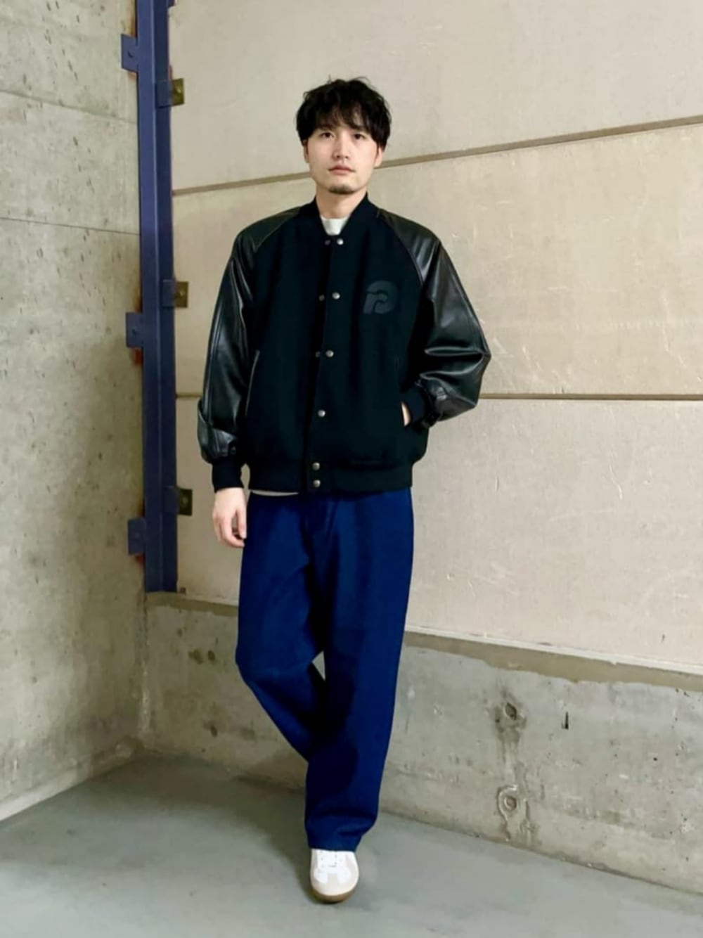 <GLR or>着用スタイリング 【サイズ感】 アウター(Mサイズ着用) 腕周りがゆとりがあるシルエットです。 インナー(Mサイズ着用) 程よく身幅にゆとりのあるシルエットです。 ボトムス(Mサイズ着用) ゆったりとしたシルエットです。 【スタイリングポイント】 程よくゆとりのあるシルエットながらも男らしい雰囲気を意識したスタイリングです。 ブラックブルゾンとデニム合わせはスタイリッシュに演出できるのでおすすめです◎