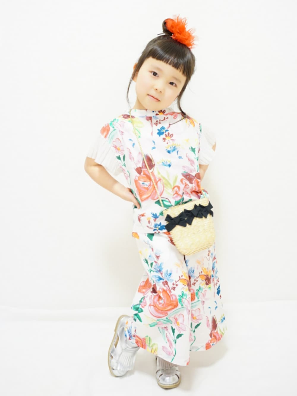 ハッカキッズの2018ss🌹🌷🌿✴ 大胆なフラワープリントが😍 トップスとワイドパンツでセットアップコーデにしました☺