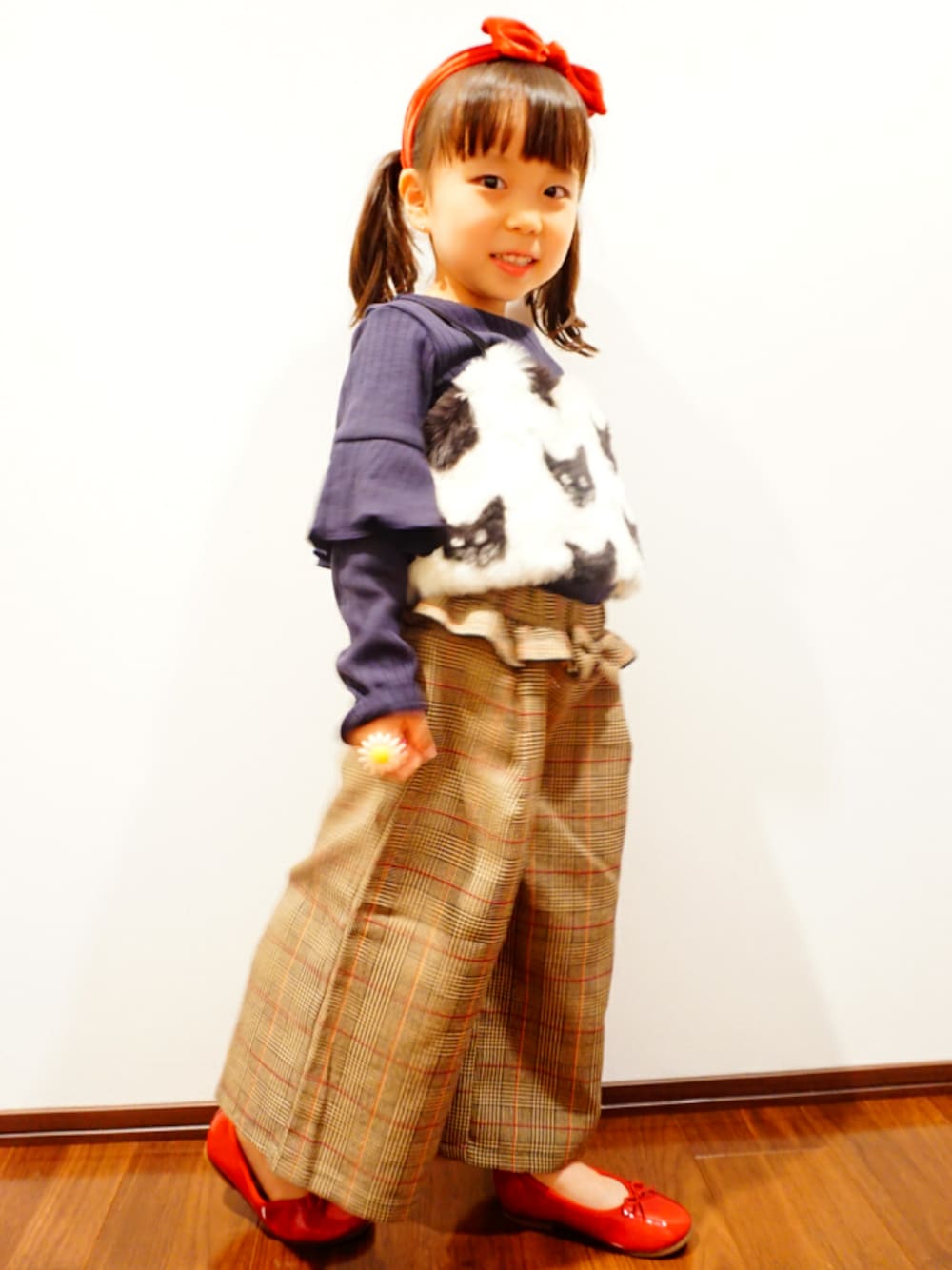 ゆん☺のその他パンツ「[90-120]グレンチェックワイドパンツ(日本製)」を使ったコーディネート