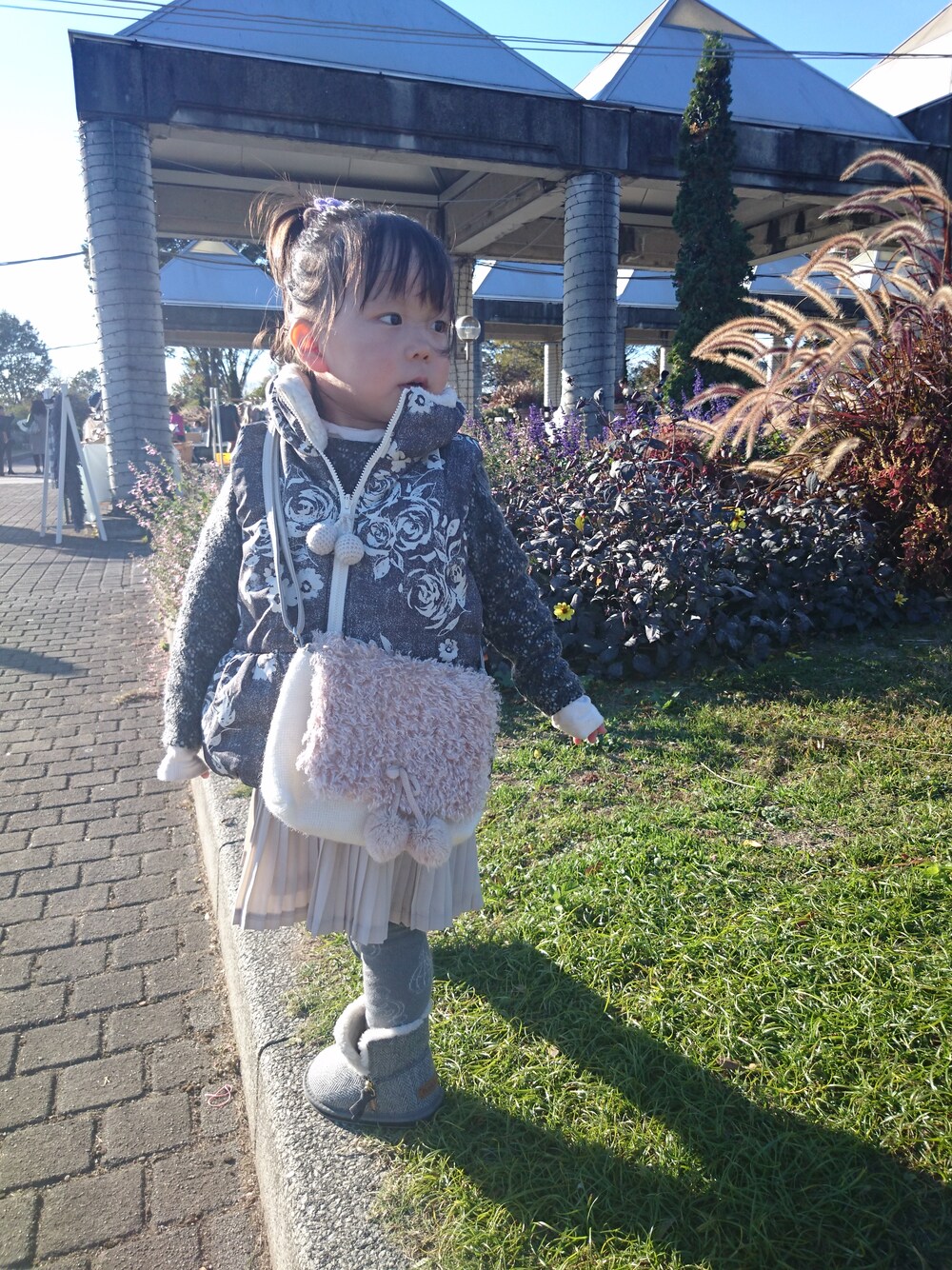 グレー×ベージュのコーディネートです! お花がきれいなフラワーパークに行ったので、服はモノトーンで決めてみました。