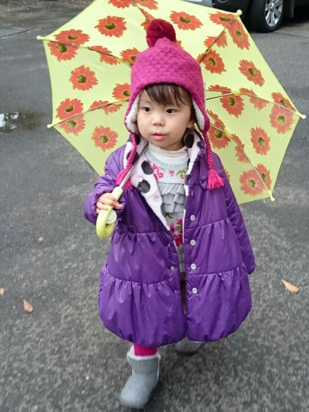 雨の日だってお出かけしちゃうよコーデ! ふわふわのパープルのコートが着心地抜群!雨が降っていてもお出かけしたくなるアイテムです。