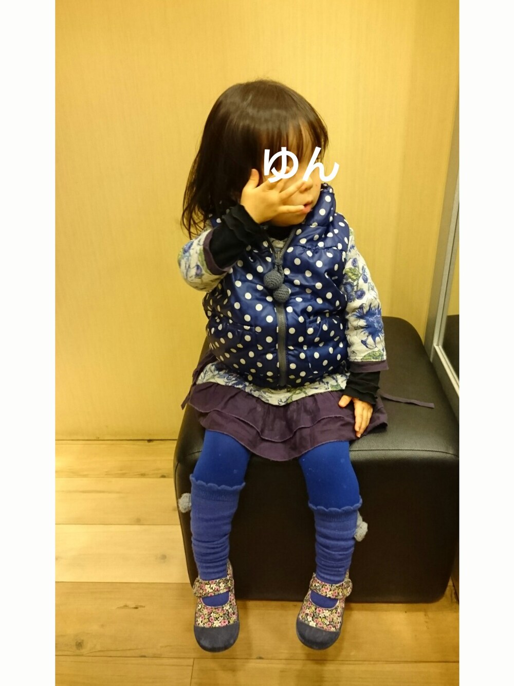 いつもいいね❤や閲覧ありがとうございます❗ 今日は全身ブルーコーデ! 写真をなかなか撮らせてくれず、目が半開きになってしまいました。なので、お顔隠します(汗💦) フラワー×ドット。大好きな組み合わせ❤ 母の自己満コーデです😆