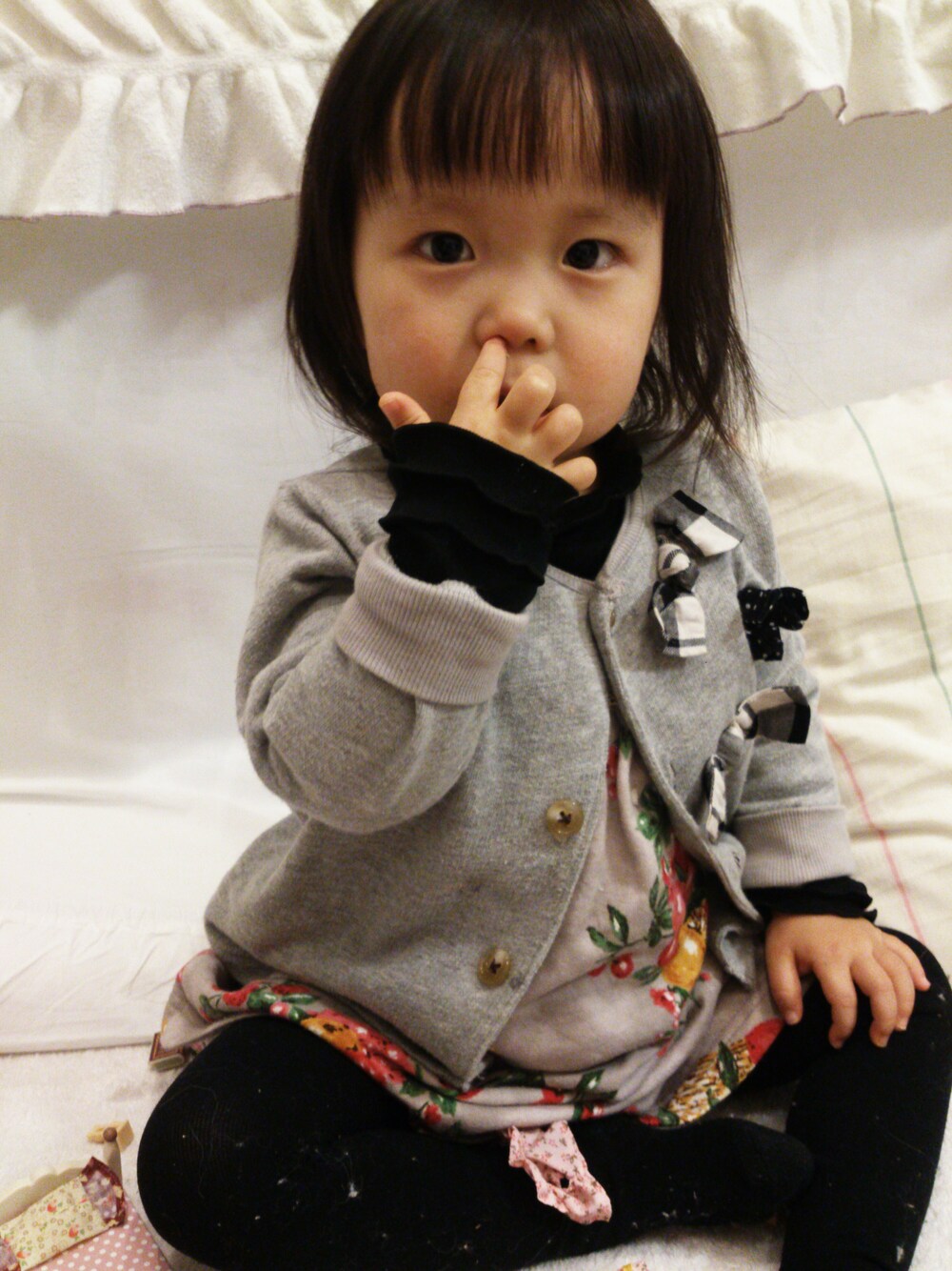いつもいいね❤やsave&コメントありがとうございます😆 ハッカ大好きな母の自己満コーデです😆 本日も1年前のコーデ💡 モノトーンの中に🍒がよく映えます☺ はなほじほじしてる(笑)