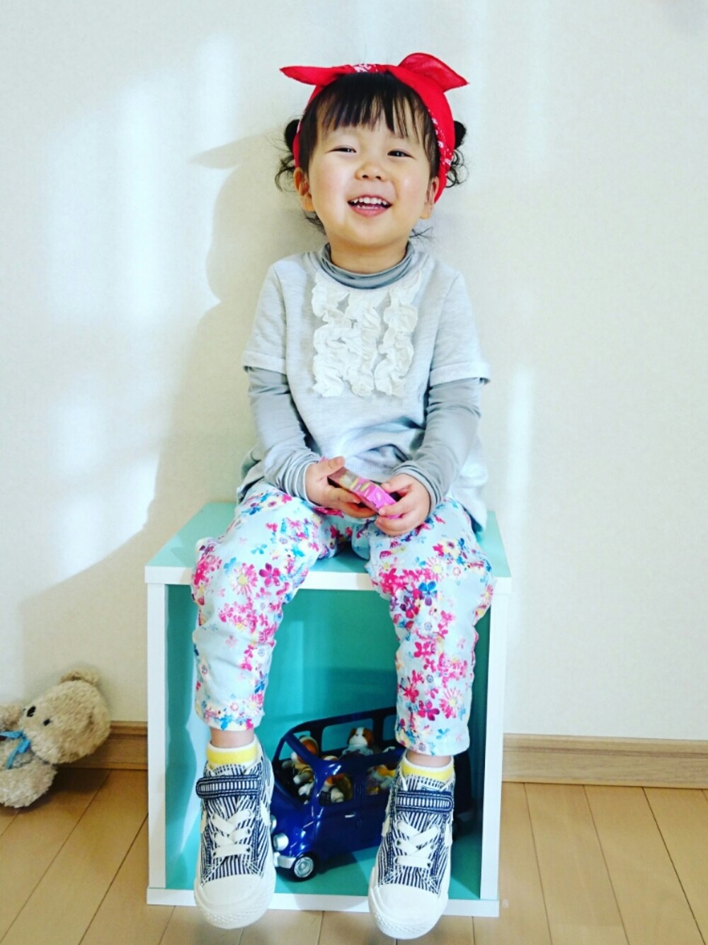 いつもいいね❤やsave&コメントありがとうございます😆✴フォローもとってもとっても嬉しいです😍🎶気軽に仲良くしてくださいね😌💕 お返事前にすみません😢⤵⤵寝落ち&早起き出来ませんでした😱本日もお仕事なので夜ゆっくり回らせていただきます❤ グレー×花柄🌷🌱 トップスが控えめなので、頭に赤いバンダナを巻いて😆(これ前にもやってる(笑)🎵) 今日も見てくださりありがとうございます😺💚ステキなGWをお過ごし下さい❤