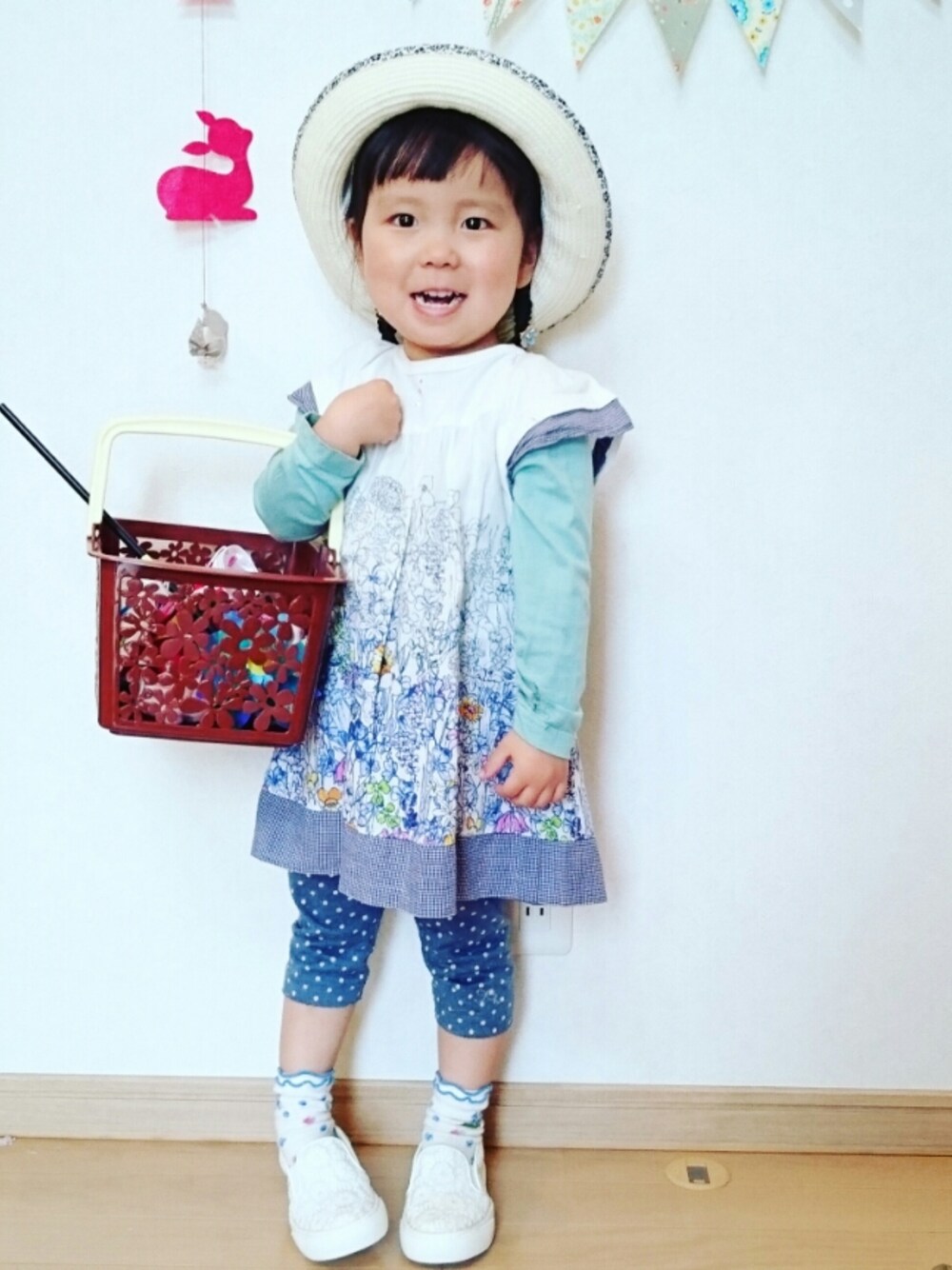 いつもいいね❤やsave&コメントありがとうございます😆💕とってもとっても嬉しいです😆💕 いつかのコーデ🎵朝イチでとったので、ちょっとお目めが😒だけど😅 ローンプリント👗は一歳半の頃からのお気に入りアイテム❤ワンサイズ上を買っていたら、3歳まで着れるなんて思ってもみなかった😆💕 自ら持ってきたかごには何が入ってるんだろう❔忘れちゃった💦🎏は確か入っていたんだよなぁ🎵 今日も見てくださりありがとうございます😆💕