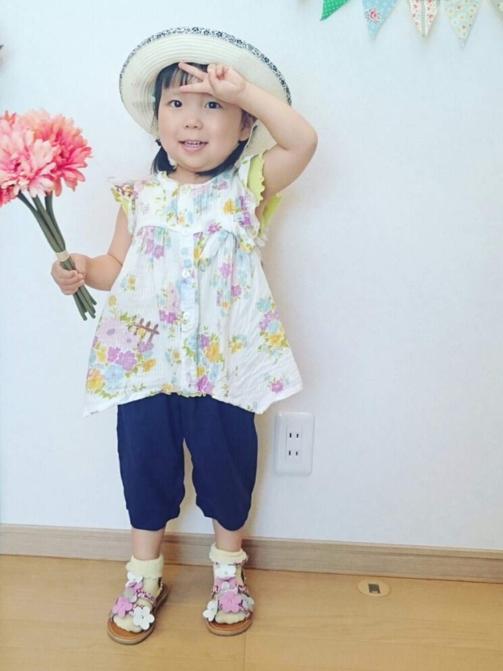 いつもいいね❤やsave&コメントありがとうございます😆💕とってもとっても嬉しいです😆❗ 昨日は初しょわーず夜会に参加😍懐かしいお話し本当に楽しかったぁ😍途中🌀に負けて話ついていけてなかったり、娘寝かせたりで、中々コメント出来なくてごめんなさい💦みんなが速すぎて読むのに精一杯だった😅来月はリベンジ頑張ります😆💕 今日は、トップスのイエローと靴下のイエローをリンクしてコーデしてみました☀暑くなると言うので、完全に夏仕様❤このコーデでばぁばん家に行きましたよ🎵私は仕事~💦 仕事終わって迎えに行ったら、全然違う服装になってた😅明日upしますね😆💕どうしてもゆんがパンツとチュニックが嫌で着替えさせられたらしい😣💦こだわりが強いゆん☺誰に似たんだか💦私かい(笑)😂 今日も見てくださりありがとうございます😆丸二日皆さんところ回れてないので、これからゆっくり皆さんのところ回りますね❤