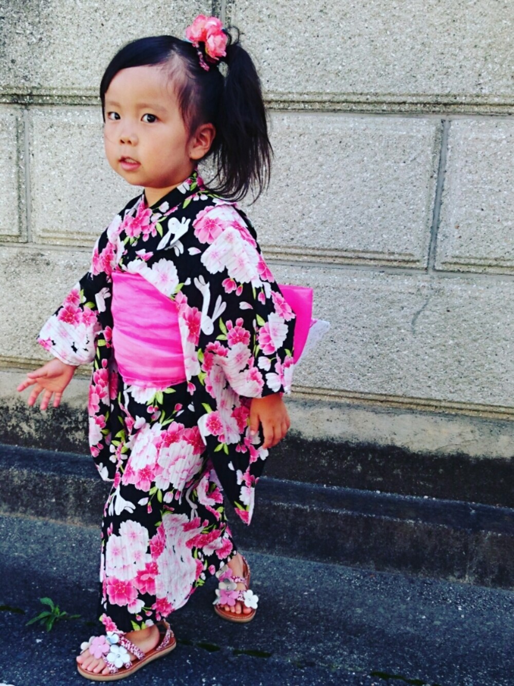 いつもいいね❤やsave&コメントありがとうございます😍🎶とってもとっても嬉しいです😊💕 お返事🐢さんで本当にすみません😢⤵⤵ゆっくり必ずお返事させて下さい❤ 昨日のお祭りコーデ❤ 浴衣👘 フェスにも参加させて下さい❤主催者様よろしくお願いします😆💕 ツモリチサトの浴衣を買おうと思っていたけれど、いとこのこのちゃんのおさがりをいただけました💕 黒ベースに鮮やかなお花柄&うさぎさん柄🐰帯はこどもらしくて濃いめのピンクでアクセント😆💕とってもステキな浴衣でした❤ 髪型はゆんさんご指名で横ポニーテール🎵ヘアスタイルも鮮やかにしたくて、ブルーのお花のヘアゴムで結んでから、髪飾りもプラスしました😆 足元はやっぱりお花モチーフサンダル❤ ちょうど浴衣の色味にも合っていました🌼 小窓は幼稚園の納涼祭の様子🎵家では全く披露してなかった盆踊り🎶3曲ノリノリで踊っていてビックリ😆💕動画igにupしています🎵良かったら覗きに来て下さいね😉 納涼祭楽しかったみたいで1度もわがままも言わず、終始笑顔のゆんさん😆とても母もステキな時間を過ごす事が出来ました❤ 今日も見てくださりありがとうございます😍🎶フォローもとっても嬉しいです😊💕是非是非気軽に仲良くしてくださいね😆💕