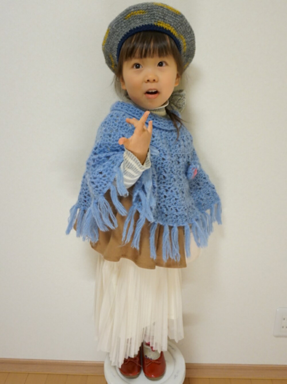 いつもいいね♥やsave&コメントありがとうございます☺✨とってもとっても嬉しいです😊💕 ayunagiちゃんのママが作ってくれたmemi.handmadeのかわいいベレー帽👒グレーベースにイエローがさりげなく入っていてとってもステキ😊 ポンチョはkateちゃんのママが作ってくれたみっちゃんmade🎀とっても繊細で形もきれい🎵みっちゃんmadeの虜です❤ ゆんさんもお気に入りで小窓のこの笑顔~😆✨ 今日も見てくださりありがとうございます☺✨