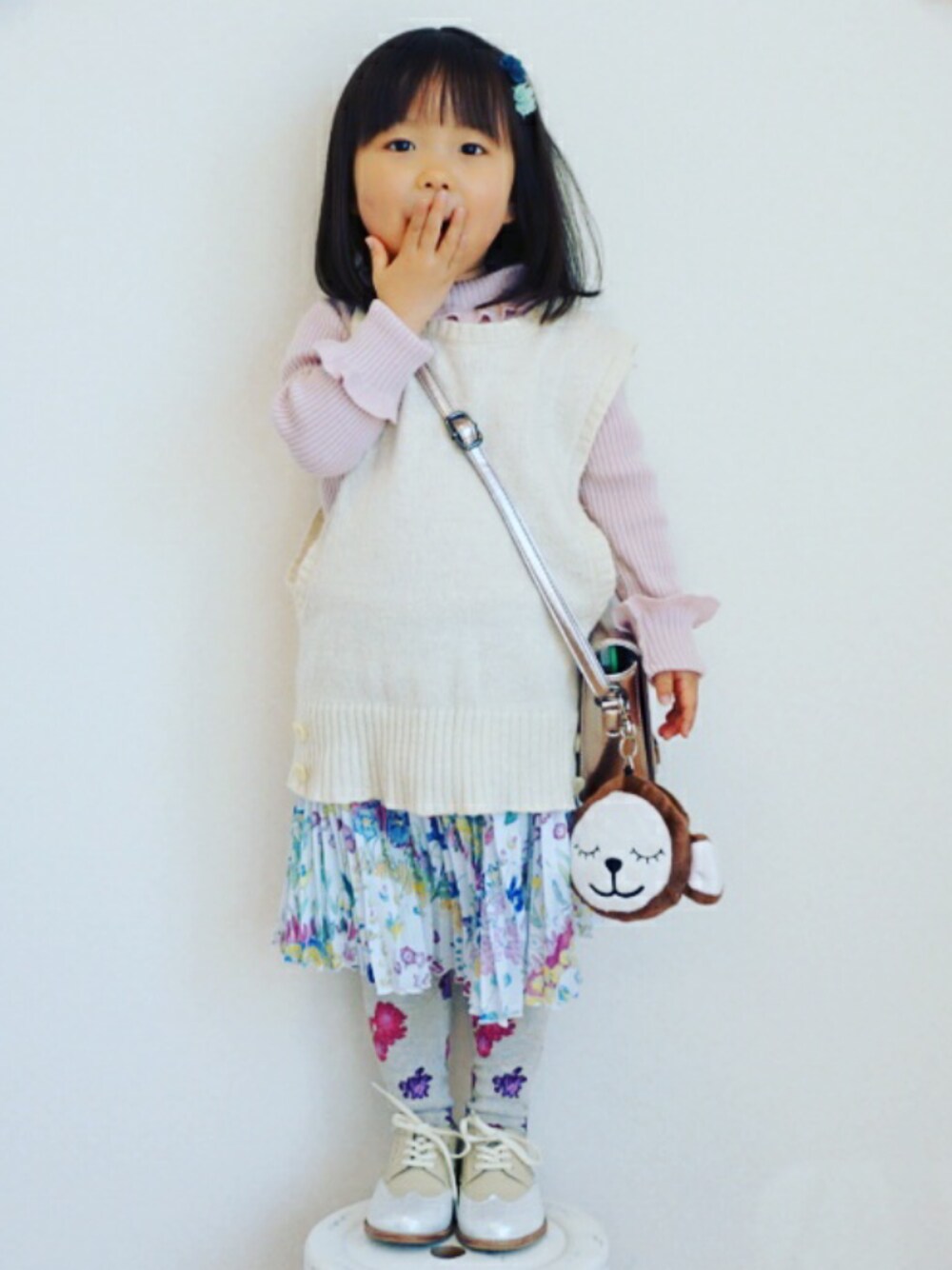 ちょっと前のリアルコーデ❤ ハッカの春の新作🌷チュールプリーツスカートが可愛すぎます🎵上は淡いピンクのニットにホワイトベストのレイヤード❤ 見てくださりありがとうございます🌹🌸