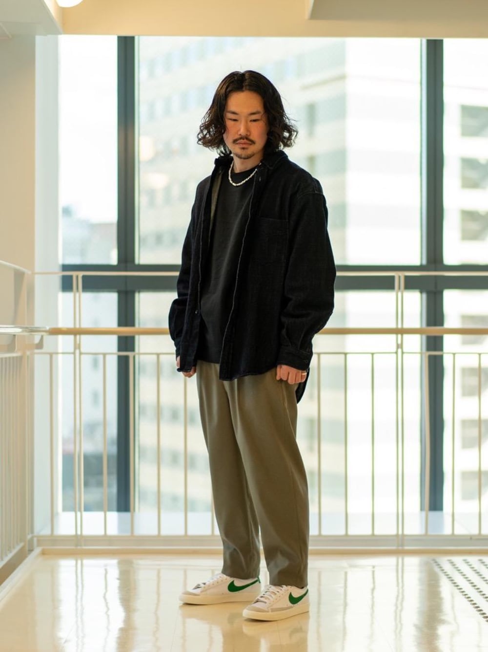 今季おすすめのデニムシャツをメインに大人カジュアルなスタイリングを組みました。 オーバーサイズのデニムシャツを大きく着用したかったのでLサイズで合わせています。肌寒い時はパーカーやスウェットをインナーとして、暖かい時にはロンTなどで合わせることができ、長いシーズンで着用していただけます。