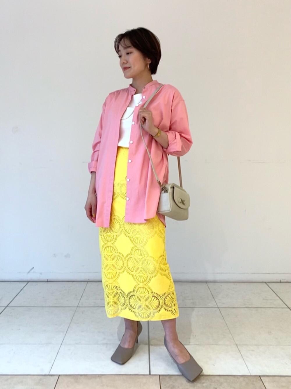 春らしい色×色の華やかなコーディネート。長めのシャツで今年らしくしました。トレンチコートはゆとりのあるサイズ感と長めの丈が特徴。程よい抜け感が演出でき、ロングタイトスカートと合わせても綺麗なバランスです。