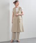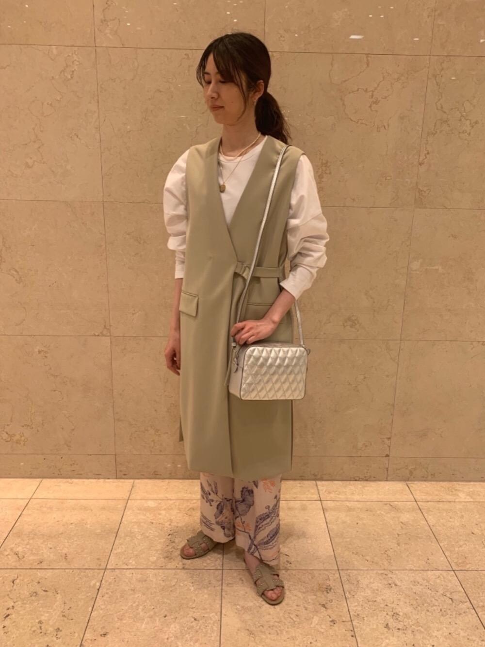 丈の長いベストは今の時期のちょっとした羽織にもぴったりです。トレンドのボタニカル柄のパンツと合わせてリラックス感のあるスタイルにしました。
