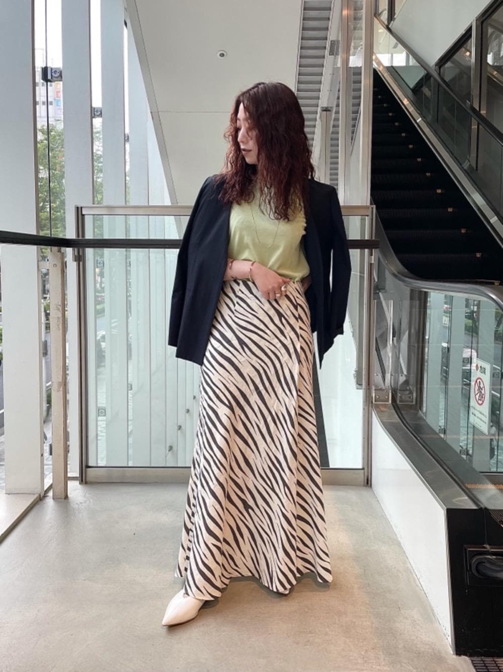 ●身長:156cm ●普段サイズ:36 【サイズ感】 スカートは36より38をあえて選び、長め丈で着用しています。36でもウエストにやや余裕がありますが、38でも許容範囲で着用頂けます。 【素材感】 リネン100パーセントで白地のスカートですが、ペチコート付きなので透けも気になりません。 【コーディネートポイント】 ジャケットで綺麗さは残しつつも、ゼブラ柄のスカートにライム色のトップスで遊びをきかせたスタイリングにしてみました。