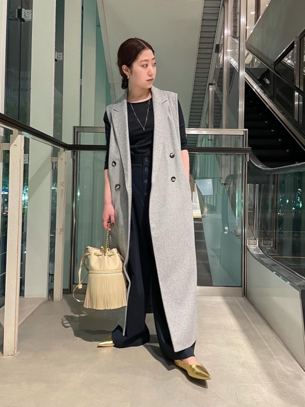 ●身長:156cm ●普段サイズ:36 【サイズ感】 パンツのウエストはハイウエストですが緩めです。ジレは長め丈で洗練された印象で着用頂けます。 【着心地】 パンツはコットン100%です。ハリ感がありますが、柔らかいです。 【コーディネートポイント】 ユナイテッドアローズでここまでのワイドシルエットなパンツは珍しいので、ジレを合わせてIラインを意識しながらかっこよくスタイリングしました。