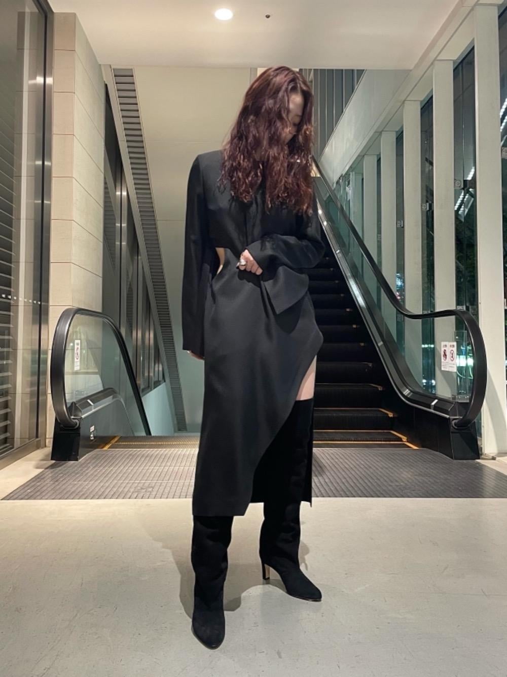 ●身長:156cm ●普段サイズ:37 【サイズ感】 〈NEBULONI〉のブーツは普段サイズでピッタリです。脚に沿う細身ではなくゆったりしたラインです。 【着心地】 〈HYKE〉のワンピースはポリエステル100%です。裏地はキュプラでツルッとしておりオールシーズン着用して頂けます。 【コーディネートポイント】 〈HYKE〉のワンピースをポイントに、〈NEBULONI〉のサイハイブーツでモード且つ女性らしいスタイリングにしました。ブーツは折り返してブラウンを見せても可愛いです。
