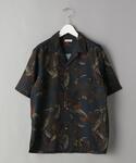 【サイズ感】 シャツ:標準的なボックスシルエット シューズ:標準的 【素材感・着心地】 シャツ:軽い素材感で夏も快適に着用いただけます シューズ:ソールが厚く、クッション性の高いはき心地 【コーディネートポイント】 ダークトーンの総柄シャツをメインにデニムとサンダルを合わせ夏に向けたスタイリングを意識しました。派手な柄物が苦手な方にもオススメのシャツです。