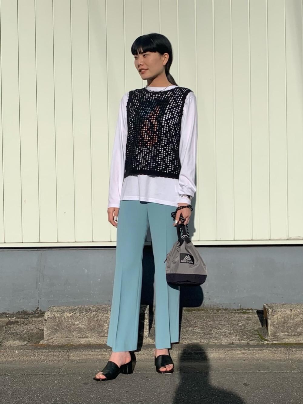 今年のトレンドアイテムの一つであるベストを使用したコーディネート。 インナー次第でコーディネートの幅が広がり、コンパクトなサイズがボトムスを選ばないことで合わせやすくおすすめです。