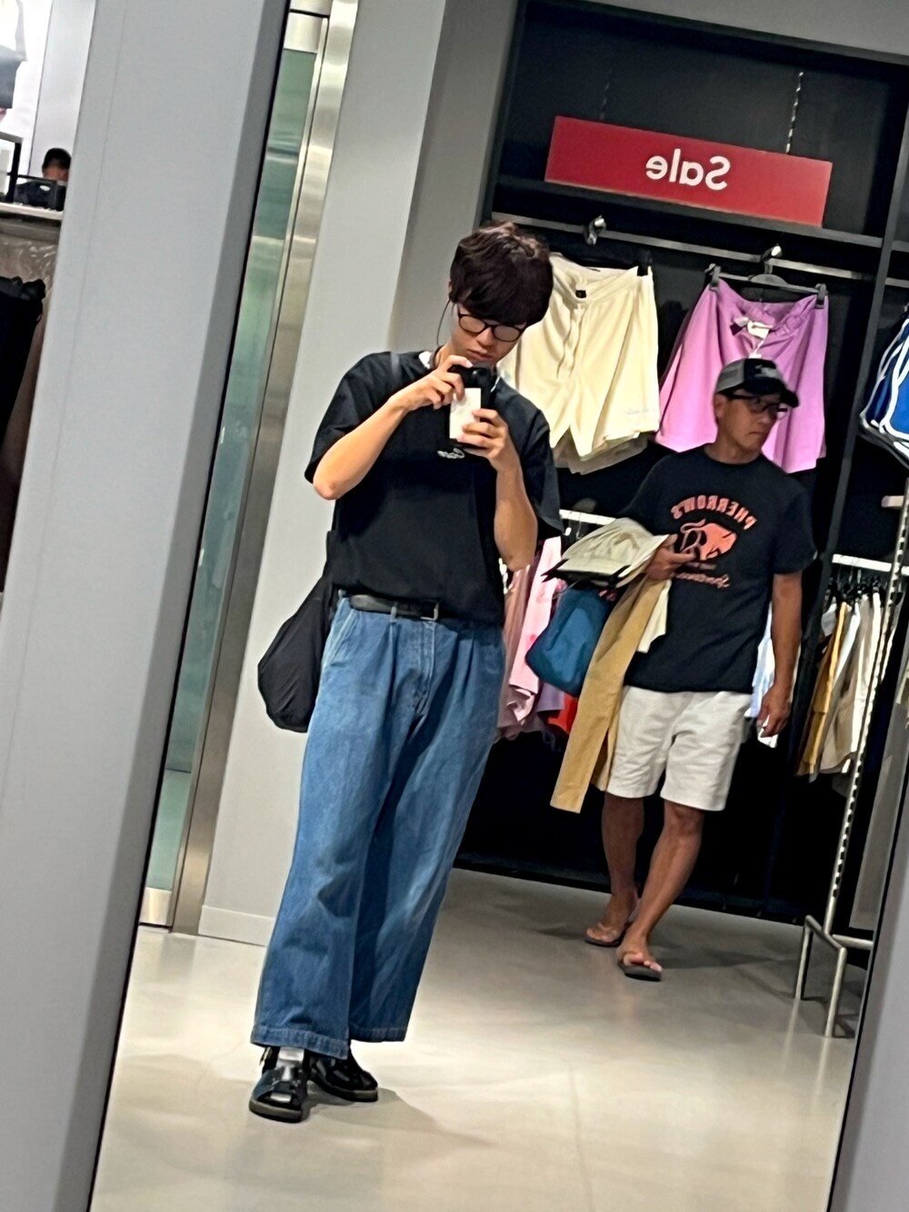 結構カッコつけ。 デニムの丈が少し短いのとアクセつけ忘れたのが気に食わないけどしゃーないか