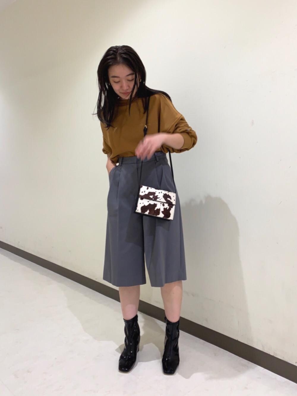 全体的に秋カラーでシンプルにまとめ、小物で遊びを入れてみました。 足元をブーツにしパンツをあえてハーフパンツにし、秋だからこそ楽しめる組み合わせにしました。 ハーフパンツのダブルタックがポイントです!