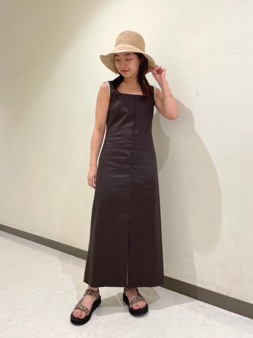 身長:153.8cm 体型:普通痩せ型 足サイズ:23.5cm(6h) 甲高、横幅広め --------------------- ハット:free 頭周り ぴったり、締め付け無し タンクトップ:free 締め付け無し ワンピース:S ぴったり、 サンダル:7 --------------------- 持ち運びにも便利なゴム付きのハットは頭の形がとても綺麗なので、綺麗めコーディネートからカジュアルな服装にも幅広くお使い頂けます。 ワンピースは普段腰回りが気になる私ですが、体型をカバーできます! サイズ感は長さも含めてSでよかったです。 サンダルは靴下とも合わせることもできるサイズ調整可能なので、私は37のサイズで良かったです! 新しく入ったアクセサリーBYOKA(ビョーカ)は沢山付けても派手になりすぎなく、シンプルで単品付けでもアクセントになるのでこの夏からぜひワードローブに入れて頂きたいお勧めブランドです!