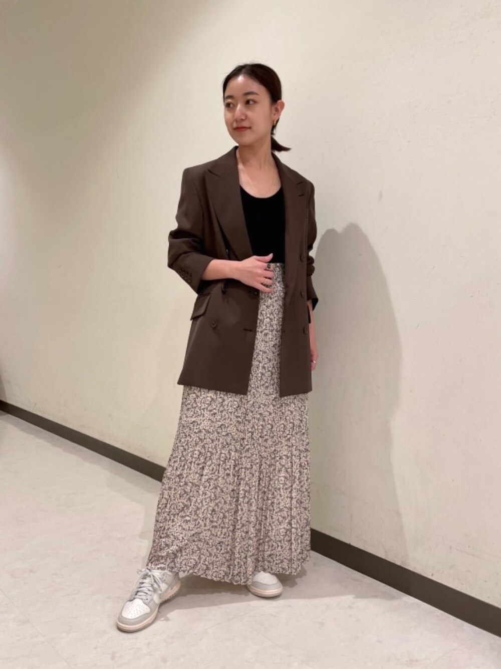 身長:153.8cm 体型:普通痩せ型 足サイズ:23.5cm(36h) --------------------- ジャケット:ゆったり 袖少し長め タンクトップ:透け感なし 締め付けなし 生地しっかりめ スカート:透け感なし ウエストゴム広がりなし スニーカー:23.5cm --------------------- ジャケットにプリーツスカートで女性らしいコーディネートにしました。カジュアルなトップスで合わせるのもお勧めです。 足元はNIKE DUNK LOWスニーカーをチョイスしました。ローカットなのでロングスカートと合わせても歩いた時にさりげなく見える足首が全体のバランスを綺麗に魅せてくれます。