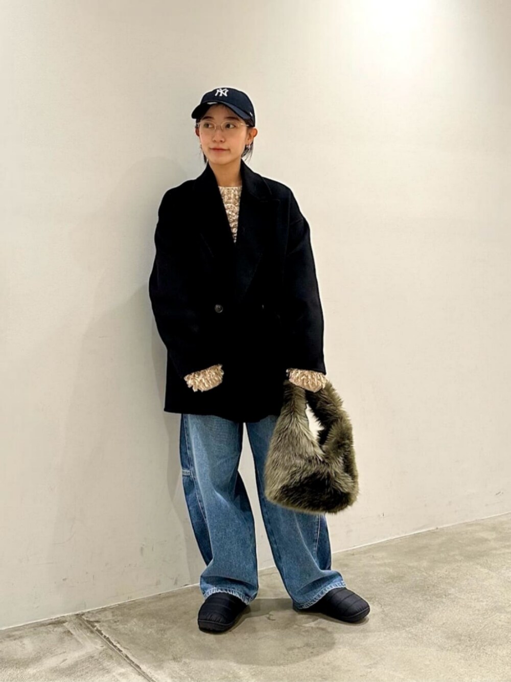 【サイズ感】 コート : ゆったり ニット : ゆったり デニム : ゆったり シューズ : 丁度いい 【コーディネートポイント】 メンズライクなコーディネートにしました。 ゆったりしたニットも合わせられるコートは丈感がミドル丈なのでボトムス問わず色々なコーディネートで楽しめます。