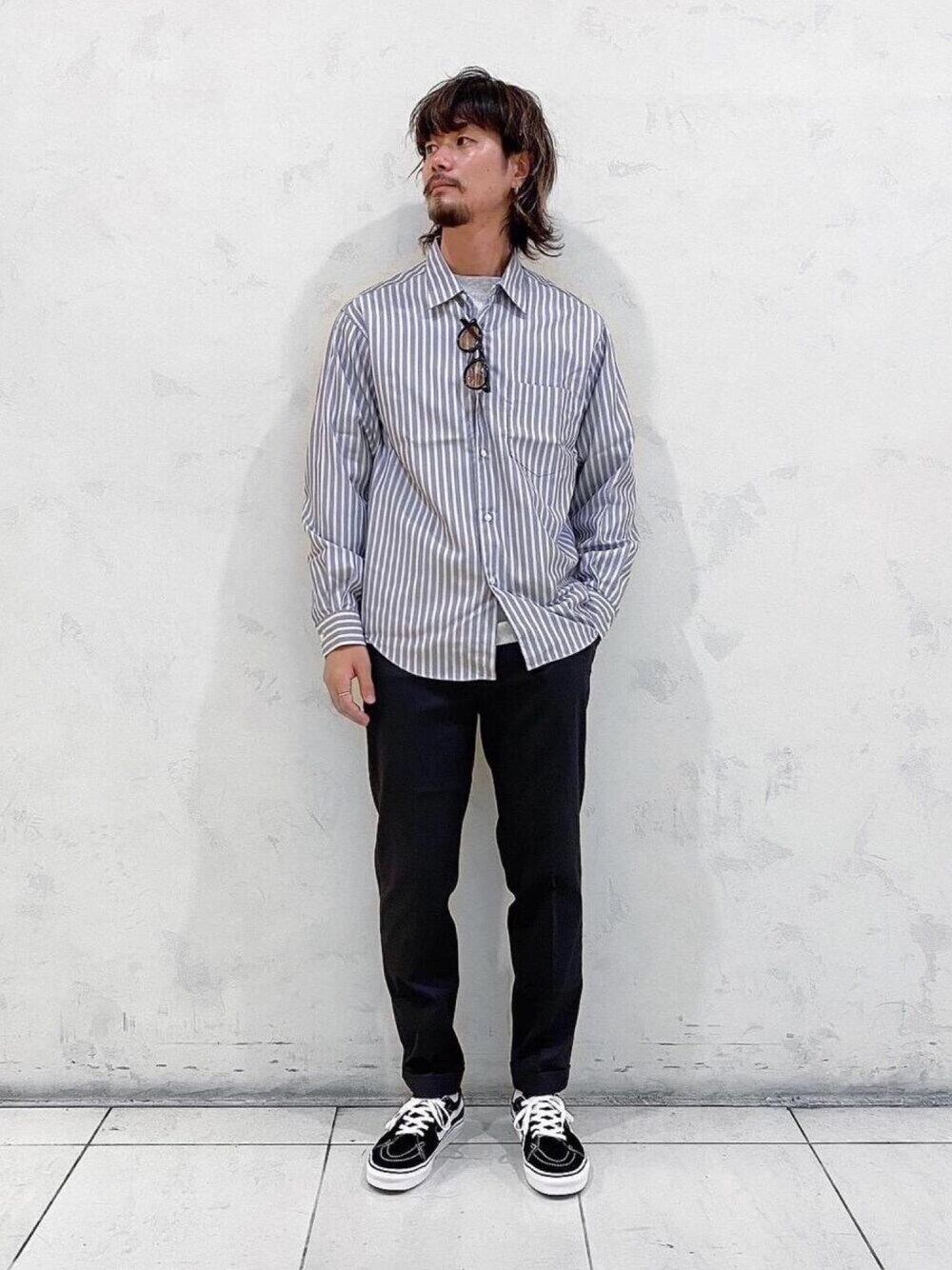今季から登場した新シルエット。 ストライプのテーパードシャツ