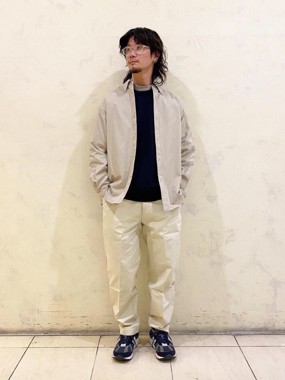 程よくゆとりのあるシルエットのGIZA cottonの topsをメインとしたコーディネートです。 羽織りとしてパリっと張り感のあるコットンナイロンなのでアウター感覚でも羽織る事ができ、組み合わせとしてベージュの〈Dickies× BY〉のパンツを選んでおります。