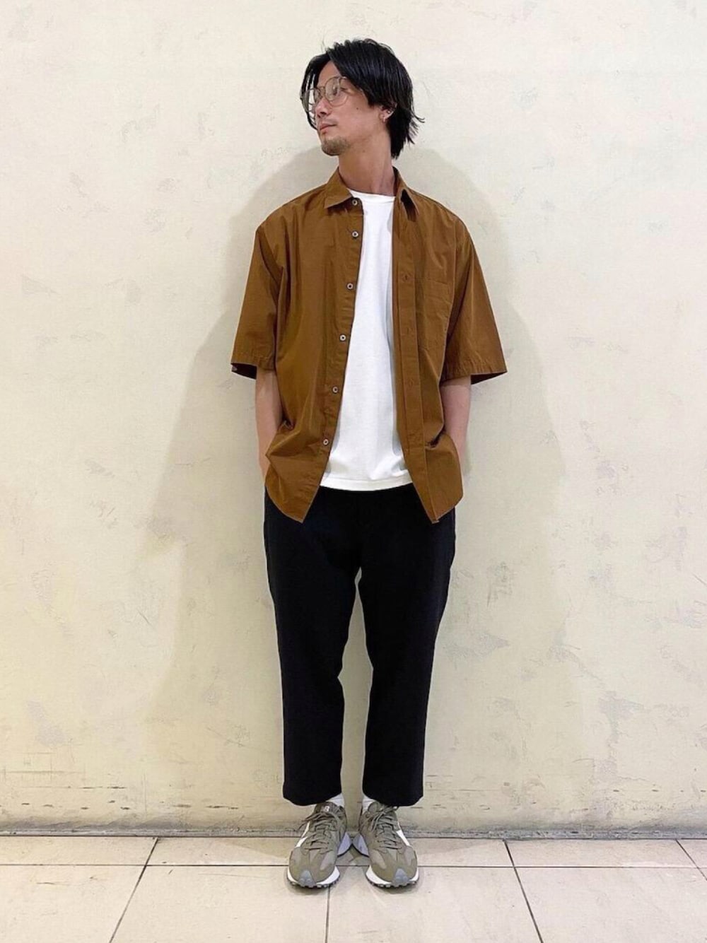 ●年齢:30代前半 ●身長:176cm ●普段サイズ:トップスL/ボトムスM 【サイズ感】 トップス:テーパードシルエット ボトムス:ややヒップ周りにゆったりとしたシルエット 【素材感】 トップス:コットン100% ボトムス:ポリエステル96%・ポリウレタン4% 【コーディネートポイント】 半端丈のパンツなので今回は327シリーズの別注シューズを合わせました。オリーブとホワイトの組み合わせのシューズなので色んな服装に合わせやすいのでおすすめです。