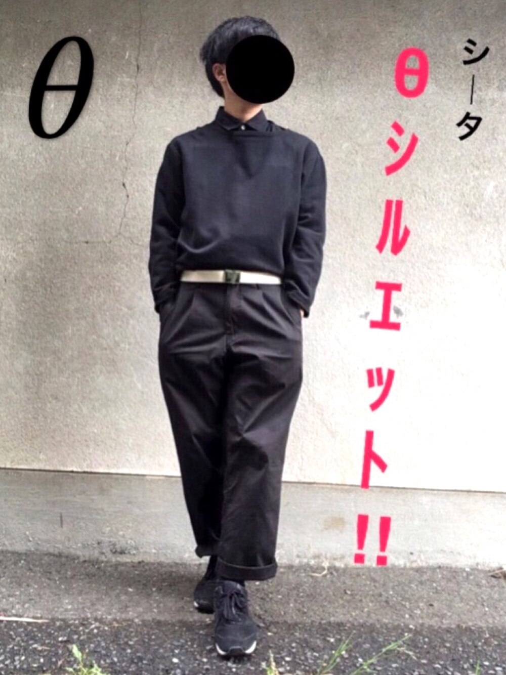 sinθ、cosθ、tanθ、三角比はみなさんご存知だと思います🙂 今日はその角度である「θ」を意識してコーデしました笑 トップス、パンツをゆる〜く着て、タックイン。足元から頭まで黒で固めて、白のベルトで真ん中の横線を作りました🙆 タックインが流行っててトレンドを追いたいと思った結果こうなりましたw というわけで本日のコーデの題名 「θシルエットでトレンド感」 トップスM インナーS パンツ S シューズ26.5 このコーデが良かったら いいね👍 SAVE📲 フォロー👫 よろしくお願いします!