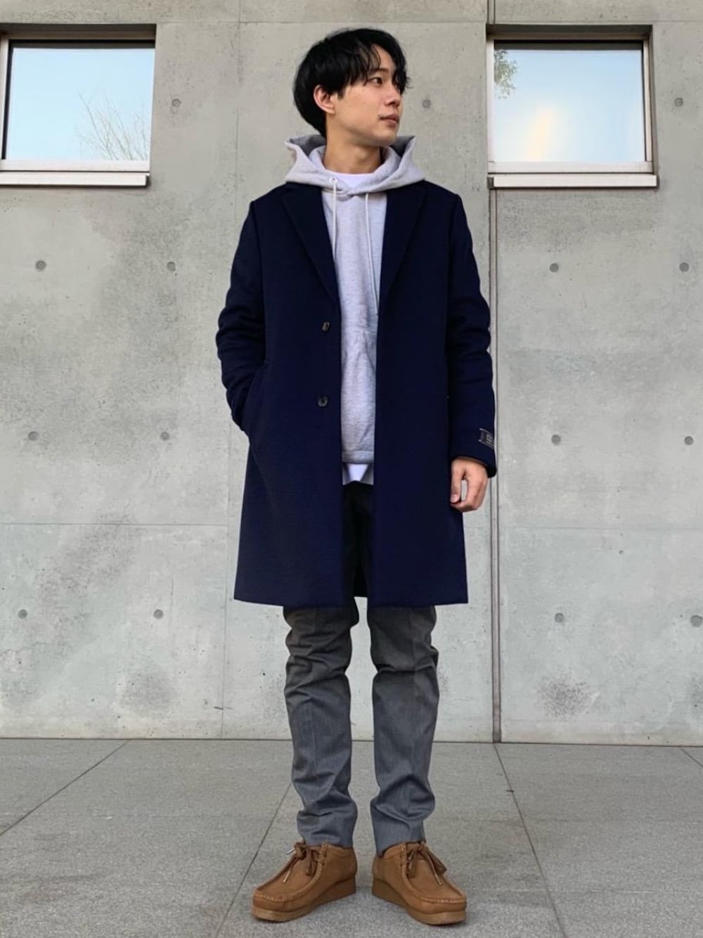 希少なスーパー120ウールを使用したメルトン素材のチェスターコート。 触り心地がよく、軽くて温かいです。 コーディネートは首元がスッキリした作りですので、パーカーやタートルネックで首元にボリュームを出してあげるのがおすすめです!