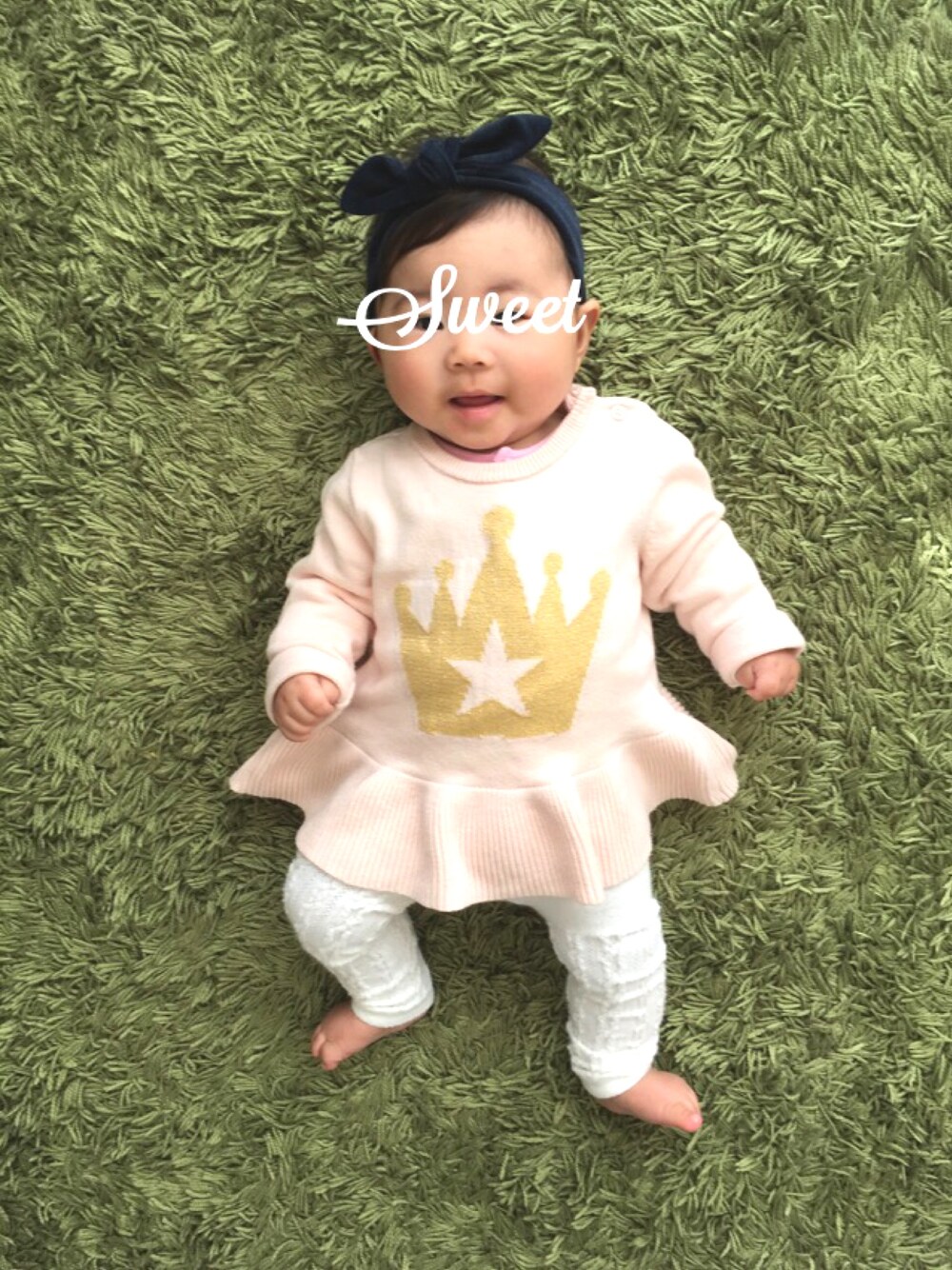 靴下履かせてなかった… 男の子ですか?女の子ですか?っていつも聞かれるのでピンク着せないと!と思って買ったトップス。 大きめの80sizeを買ってワンピース風に…♡