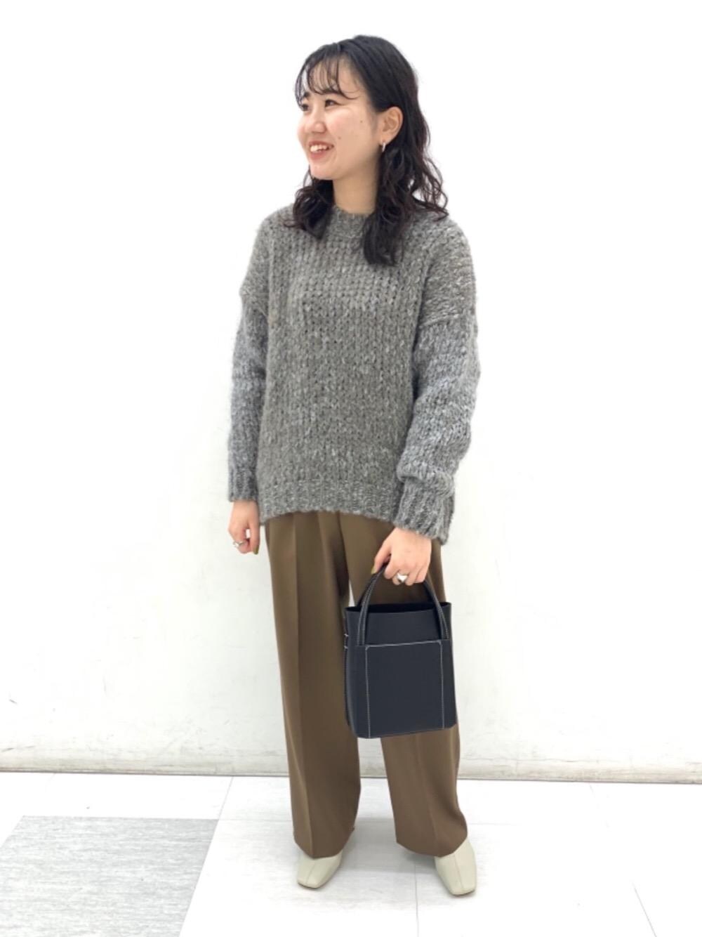 <TRICOTS JEAN MARC>別注のニットとシルエットが綺麗なボトムスでコーディネートしました。MIX感のある2色の糸で丁寧に編み込まれ、程よくボリューム感もあるので一枚でも様になるニットです!