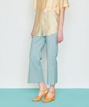 【身長】154㎝ 【普段サイズ】トップス36/ボトムス34/シューズ23㎝ 【サイズ感】 ベスト:ややゆったりめ シャツ:ややゆったりめ、袖丈長め パンツ:標準的 【素材感】 ベスト:ウール100%で温かく柔らかい シャツ:ナチュラルな表情のある生地感 パンツ:ハリ感があり、しっかりしている 【着心地】 ベスト:3通りの着方ができ、アレンジ方法も向きを変えるだけと簡単です。 シャツ:ボリュームスリーブが柔らかい着心地 パンツ:裾のスリットがデザイン性と足捌きのしやすさを両立します。